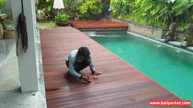 Mengapa bisa demikian? Ya, sebab lantai kayu outdoor akan langsung berhadapan dengan perubahan cuaca, seperti paparan sinar matahari maupun guyuran air hujan.
